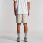 - Sweat shorts, self-fabric elasticated waistband, tonal internal drawcord, 2 side pockets, single pocket at back, double needle hems