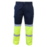 Comfort fit, One side Contains Large Flap Cargo pocket, the other a tool and mobile phone pockets, Double Hoop CSR Reflective tape. (Bio-motion taping on legs).